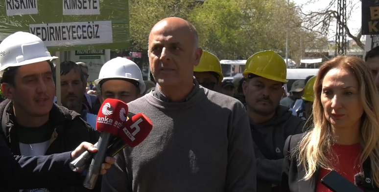 Sonra birdenbire 15 Temmuz darbesi sonrasında aniden farkına vardılar ki, bu şirket FETÖ'cüymüş. O gün şirkete kayyum atandı. Bu kardeşlerimiz o zaman da mağdur edildi. Biz gene yanlarındaydık. Arkasından şirket TMSF'ye devredildi ve TMSF maaşlarını ödememeye başladı. Biz gene mağdur olan madenci kardeşlerimizin yanındaydık ve dönemin Enerji Bakanı Berat Albayrak'la, Çalışma ve Sosyal Güvenlik Güvenlik Bakanı Jülde Sarıeroğlu ile birtakım görüşmeler yaparak ve o dönemde işçi kardeşlerimizin maaşlarına getirilen hacizleri de durdurmak suretiyle bir diploması yürüterek haklarının eninde sonunda alınmasına katkı sağladık. Bugün de onların yanındayız ve onlar haklarını tam anlamıyla alıncaya kadar yanlarında olmaya, alın terinin karşılığının sadece ve sadece ücret değil aynı zamanda onurlu bir yaşam hakkı olduğunu savunmaya devam edeceğiz. Yani bizler bugün burada sadece onların kazanılmış maddi haklarından bahsetmiyoruz. Onurlarından da bahsediyoruz. Çünkü bu kardeşlerimiz 2017 yılından bu yana sürekli hak mağduriyeti yaşıyor. İçlerinde beyin kanaması geçirip yaşamını kaybeden oldu. Kalp krizi geçirip yaşamını kaybeden oldu. 'Bu yaştan sonra evimi kapadım, iç güveysi olarak eşimin ailesinin yanına yerleştim' diyenler oldu. Dolayısıyla kaybettikleri sağlıklarının ve aynı zamanda da korumak istedikleri onurlarının da bir mücadelesidir bugün burada verilen."